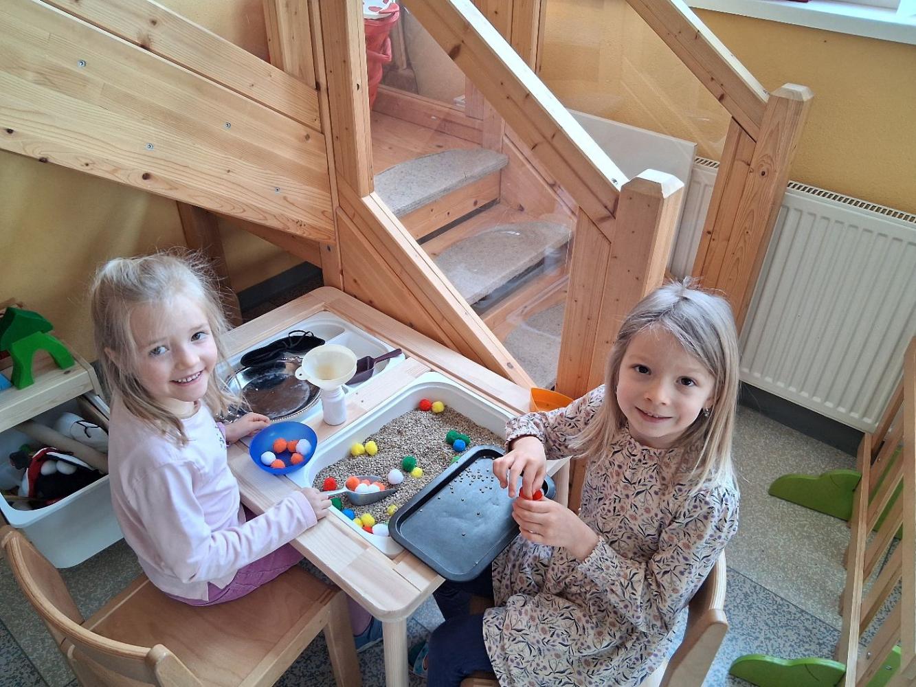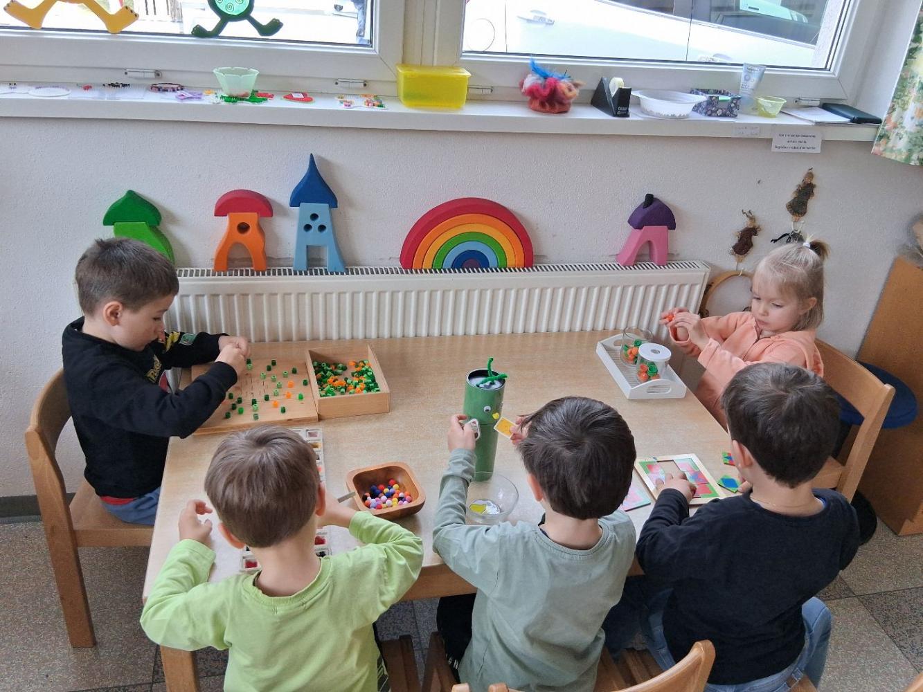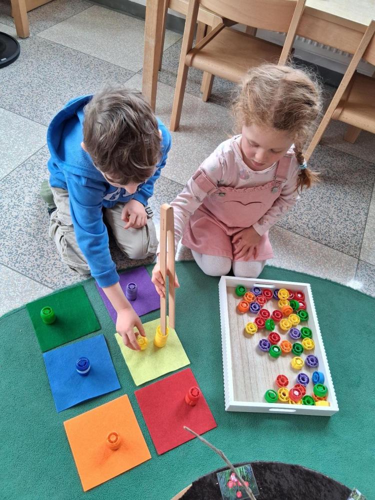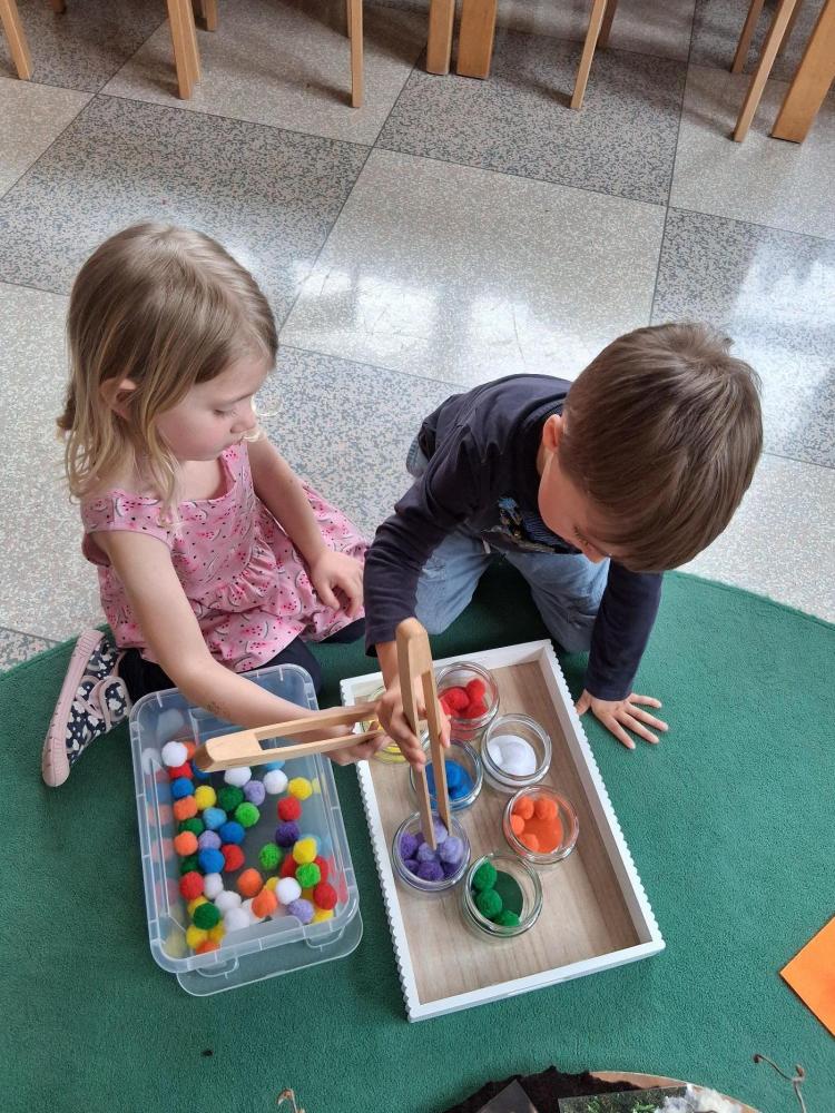 Passend zu Ostern und unserem Schwerpunkt Farben haben wir uns intensiv mit verschiedenen selbst hergestellten Spielen beschäftigt. Alltagsmaterialien wie Zangen, Löffel und Schüsseln sind dabei wichtige Werkzeuge für unser Tun geworden. Die Spiele können am Tisch, auf dem Teppich oder am Sinnestisch gespielt werden und je nach Alter auch in den Schwierigkeitsstufen abgewandelt werden. Spielerisch werden so die sprachliche, motorische, soziale und emotionale Entwicklung gefördert und der Grundstein für viele weitere Entwicklungsschritte gelegt.